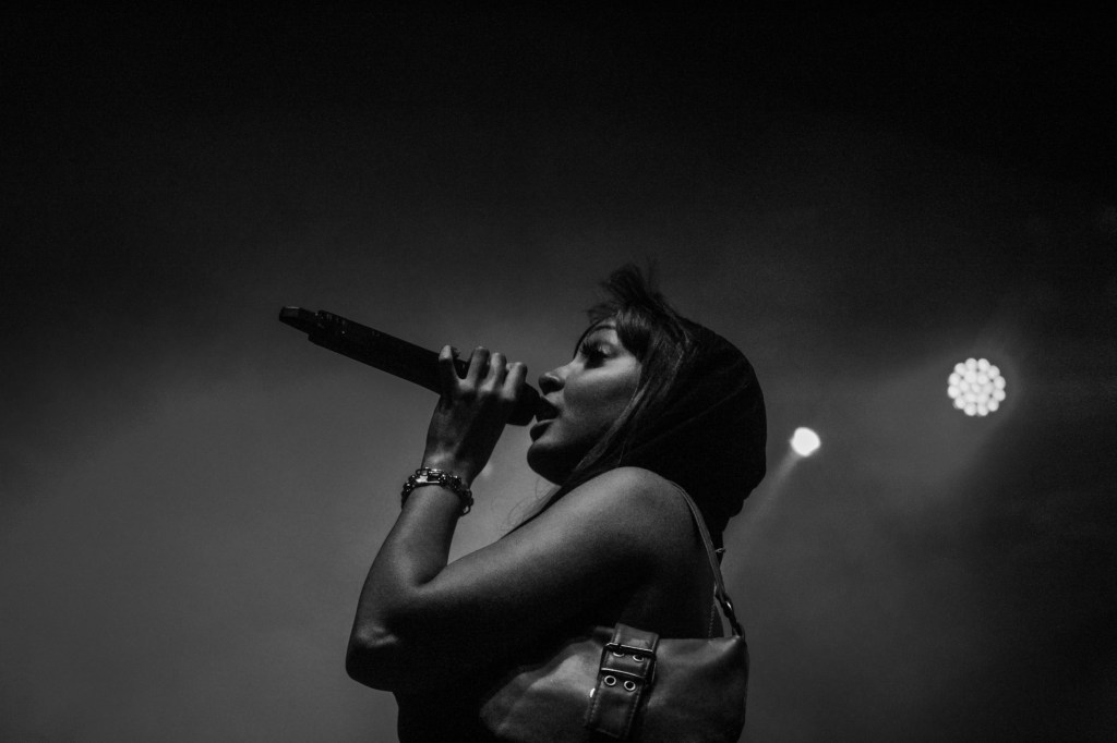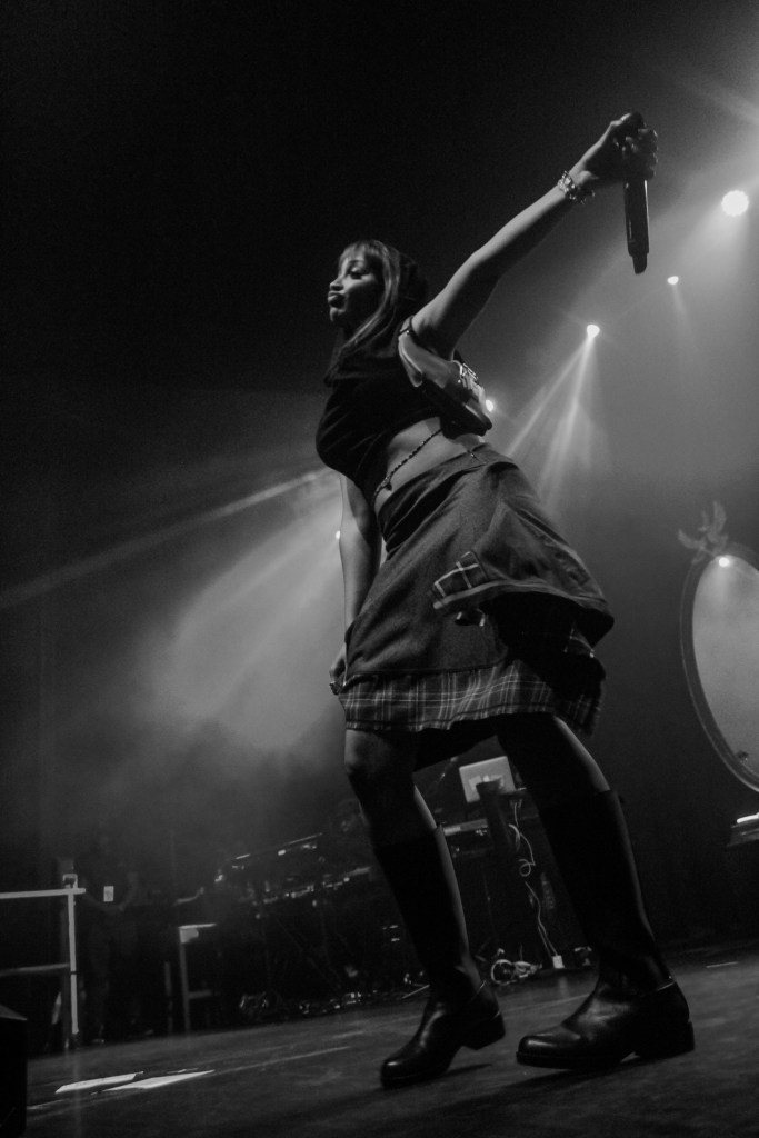 Her second show on her run of the UK, the MOBO award-winning singer (real name Vicky Beverly Walker) was met with nothing but rapturous applause as she burst into fan-favourite Break It Off. “One day I just wanna hear you say – I like you. What’s stopping you?” screamed the crowd, accompanied by Walker’s undeniably talented band. Going into this show I expected backing tracks and a karaoke style show, reminiscent of Ian Brown’s recent style. However it surprised me to hear how well PinkPantheress’ tracks translated to a live band setup, with huge punchy bass sounds, a slick acoustic drum setup, and spacey guitar shreds.