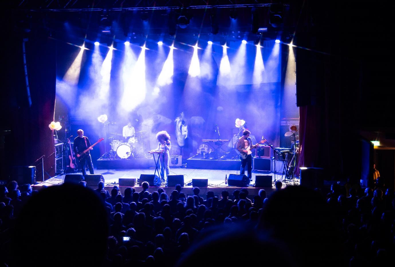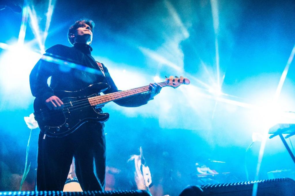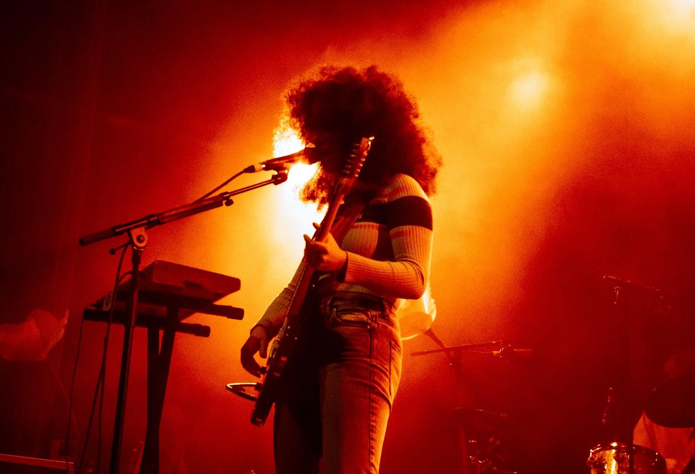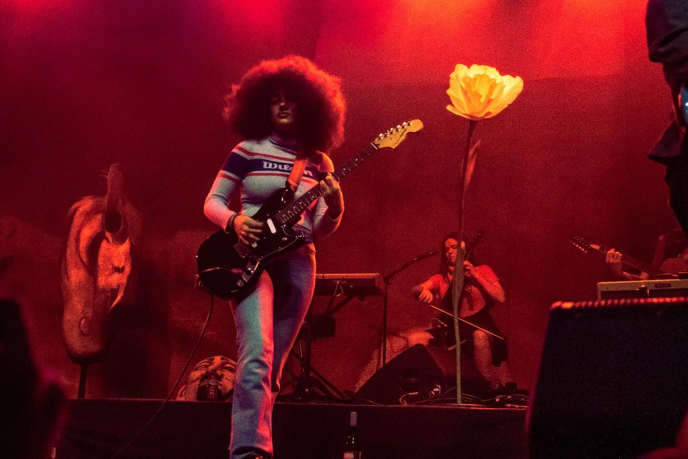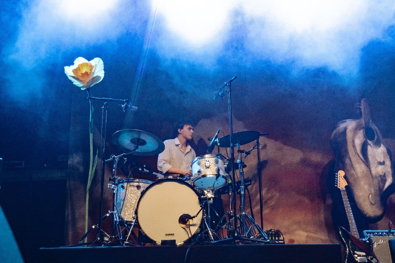 Lights dimmed on the mountainous scene and anticipation peaked as Fontaine glided onto the stage with band members, Whiting, Frost, and Eden in close stead, with an immediate stage presence that needed no spoken demand to be felt. The contagious bassline of fan-favourite song, ‘R&B’, rumbled out from Eden’s bass across the venue to enthusiastic reciprocation from the crowd. With a rapid progression into the debut album, English Teacher fell into place playing ‘I’m Not Crying, You’re Crying’ in the wide-eyed gaze of both old loyal and newly recruited fans alike.